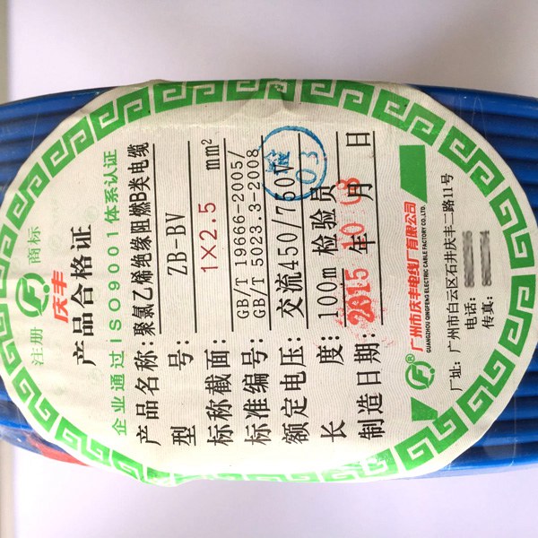 廣州慶豐電纜ZB-BVV阻燃B級家裝電線